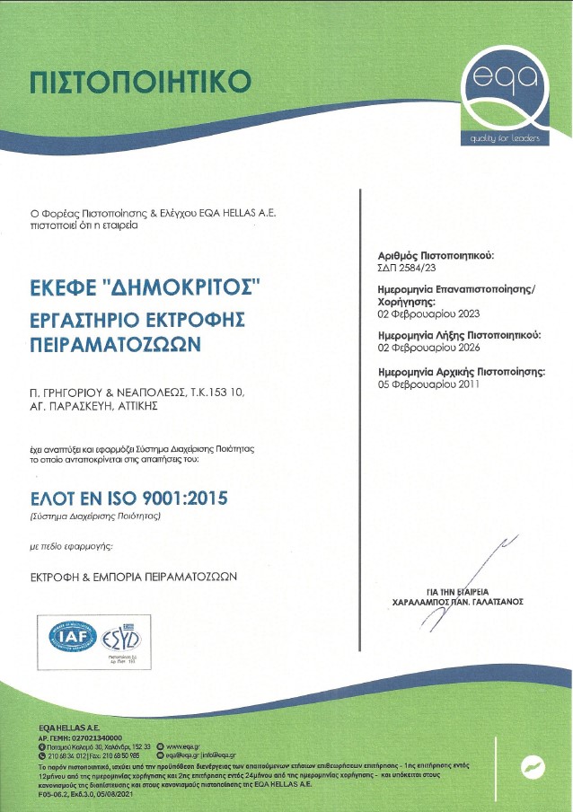- Αριθμός άδειας Εγκατάστασης Αναπαραγωγής ΕL25BIObr019
