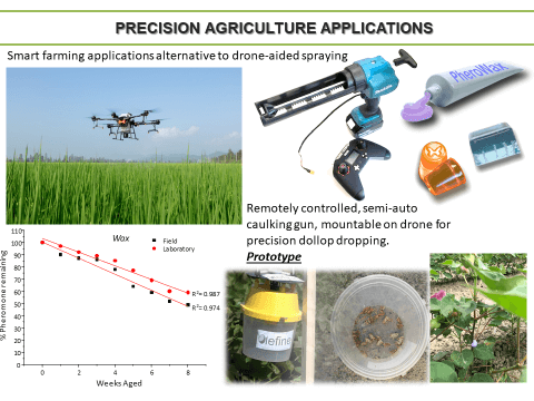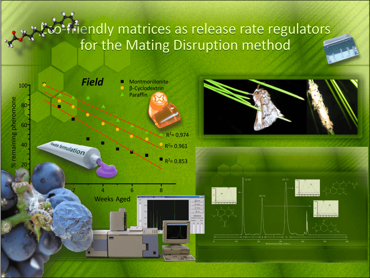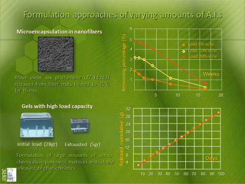 - Development of specialized dispensers for semiochemicals acting as attractants/repellants for insects and technologies for their application in pest control. Biodegradable materials endowed with controlled- release rate and UV protection properties.